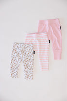 מארז 3 מכנסיים עם רגליות מתקפלות מבד ריב // PINK + PINK STRIPE + PINK LEO