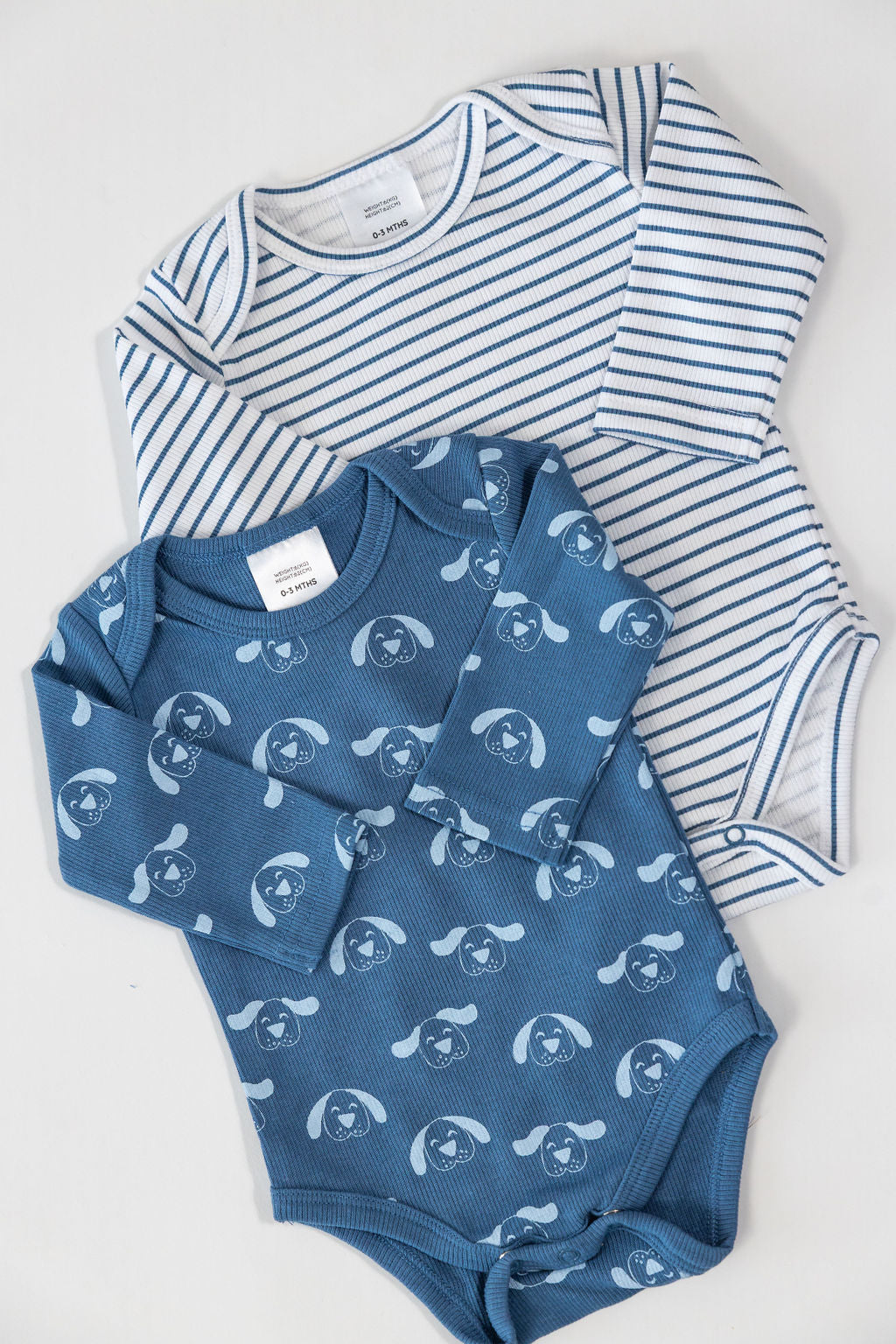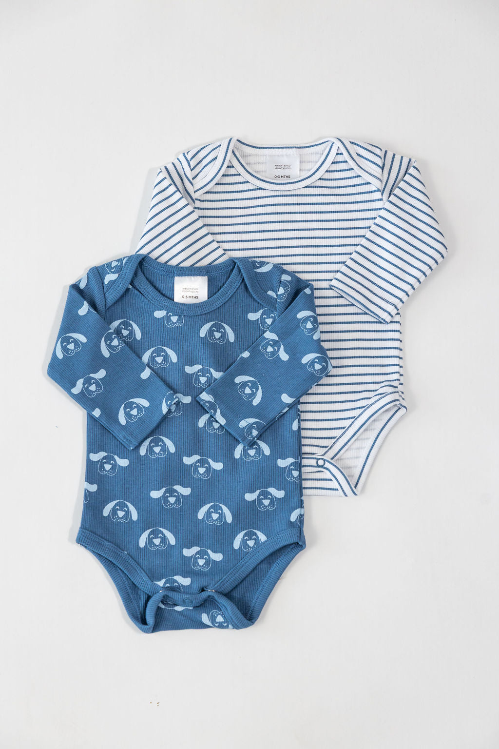 מארז 2 בגדי גוף מבד ריב // DOG LOVERS + BLUE STRIPE