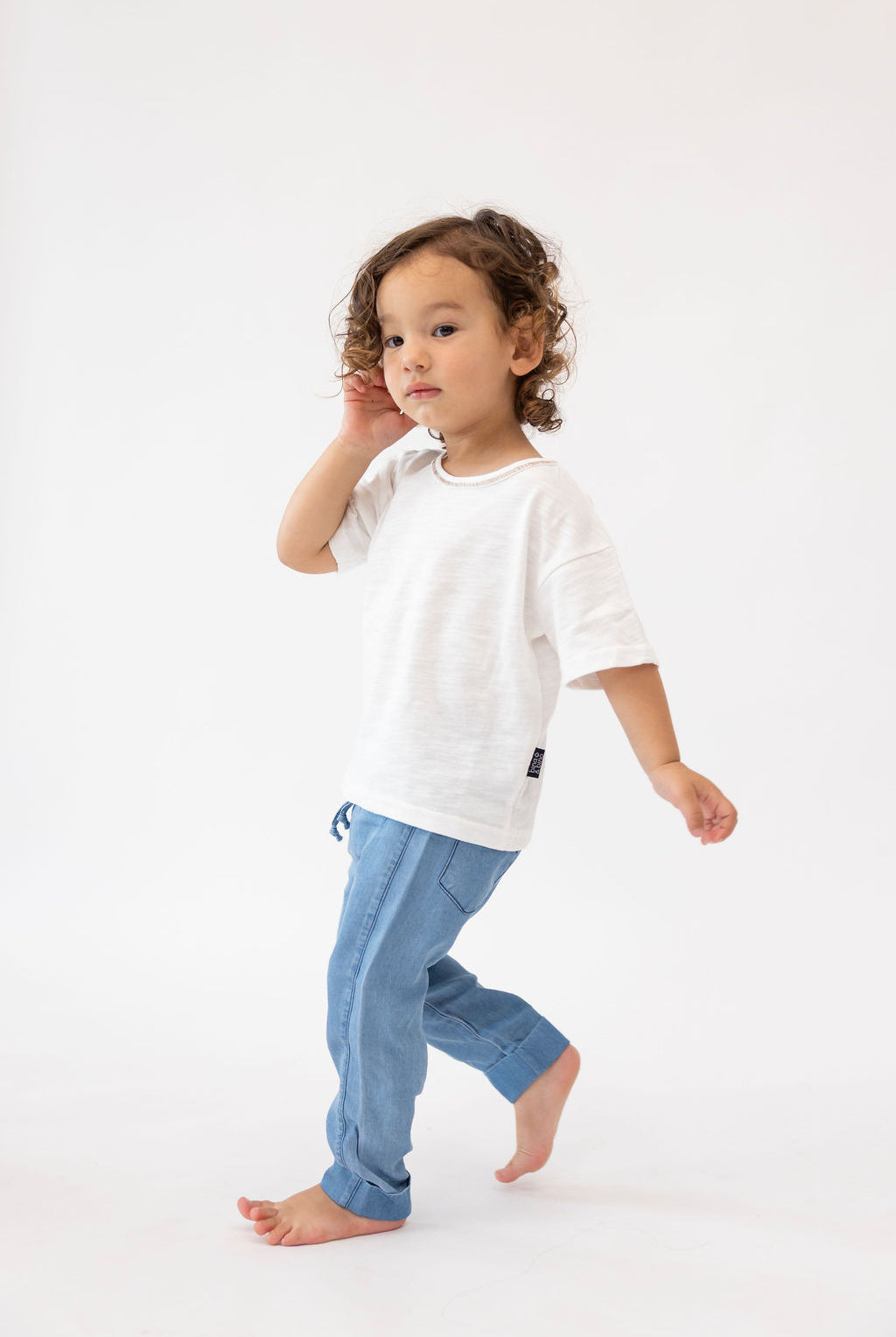 ג’ינס – עמיד ואופנתי, מעניק לקטנטנים מראה מתוק עם נוחות מלאה.