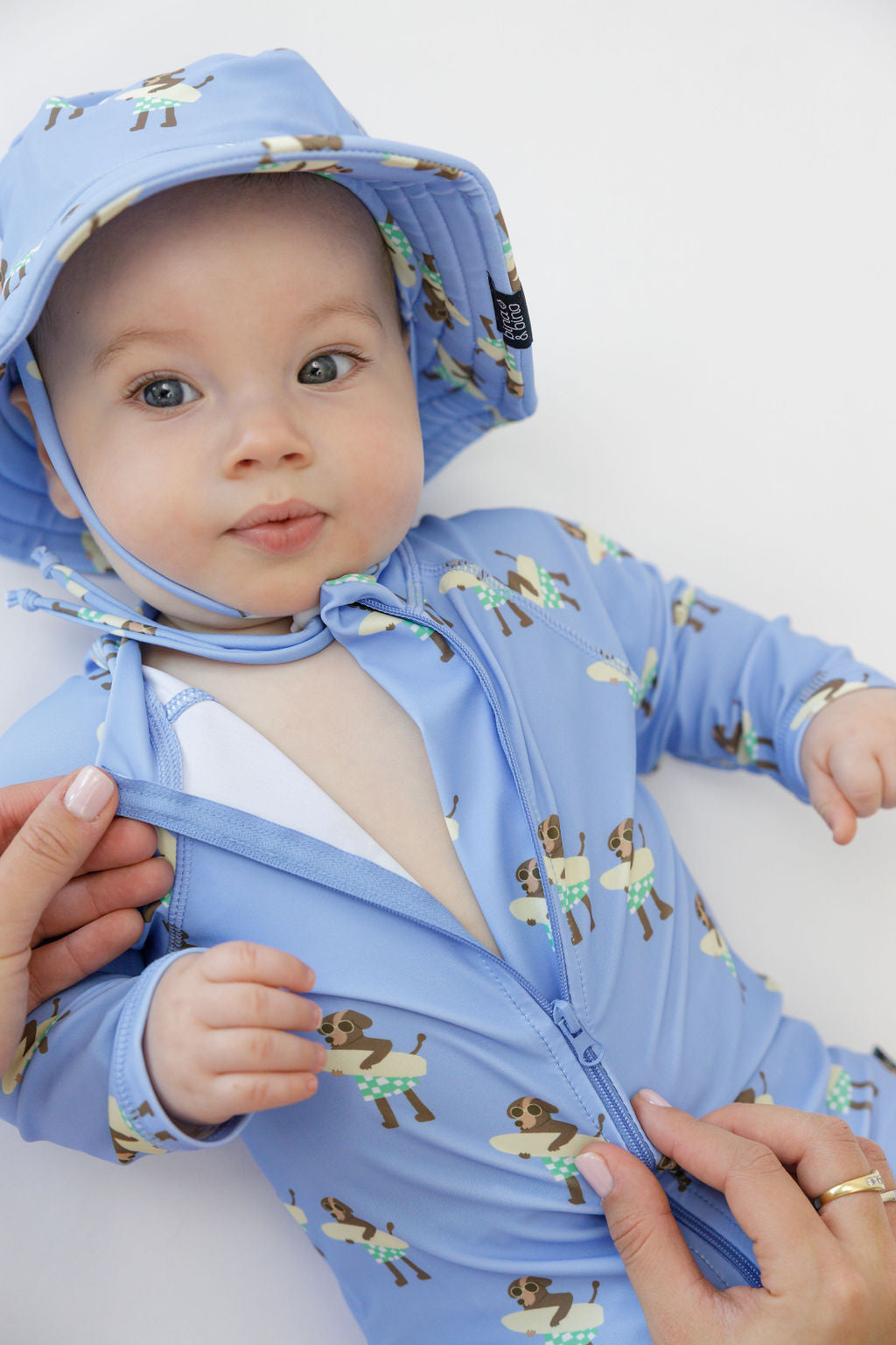 האוברול בגד ים מתאים באופן מושלם לכובע // SURF'S UP PUP