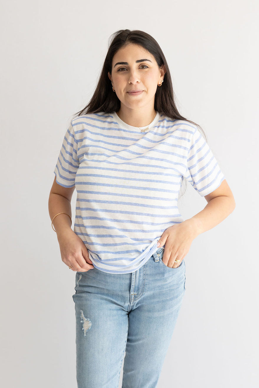 החולצה שלנו בגזרה רחבה, מושלמת לשילוב בין בגדים שונים. ערבבו והתאימו ללוק המושלם.